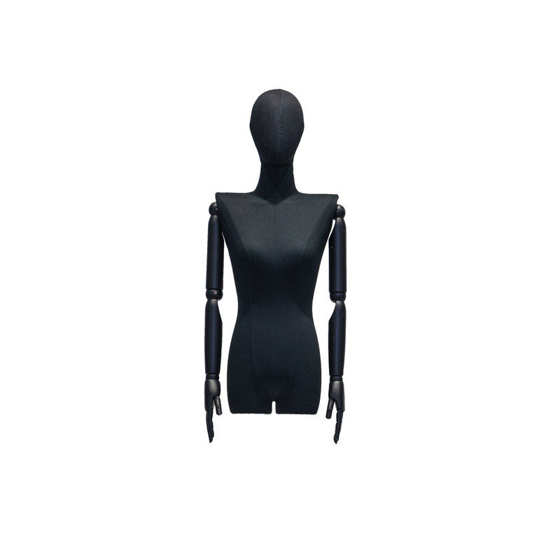 Branco e preto são cores clássicas e atemporais que sempre foram altamente valorizadas no campo da moda.O branco apresenta uma atmosfera pura, fresca e elegante, adequada para mostrar desenhos e produtos claros e brilhantes.O preto apresenta um charme misterioso, elegante e atraente, adequado para mostrar estilos e produtos de alta qualidade e na moda.Não importa qual cor escolha, esta modelo feminina de meio corpo pode trazer um sentido clássico de moda para a sua exposição de moda.Este modelo feminino de meio corpo é a escolha ideal para marcas de moda, designers e varejistas.Pode mostrar a sua criatividade e produtos de moda.Ao escolher diferentes cores e combinações, você pode apresentar uma ampla gama de estilos de moda e inspiração.Faça deste clássico modelo feminino de meio corpo envolto em linho branco e preto um destaque da sua exibição de moda, trazendo um banquete de moda elegante e na moda para o público.Ele ganhará mais elogios e atenção para a sua marca, e fornecerá aos clientes uma experiência de compra única e agradável.Seja apresentado de forma independente ou emparelhado com outros modelos, este modelo feminino de meio corpo será a escolha perfeita para a sua exposição de moda.
