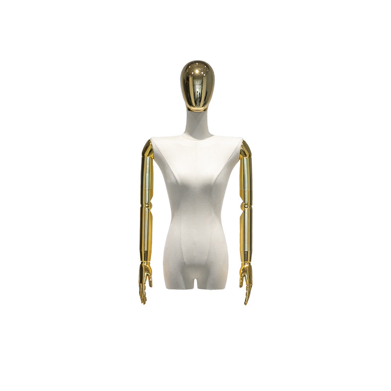 Bem-vindos à nossa exposição de modelos de moda feminina!Estamos orgulhosos de lançar esta exposição de semi-modelo com cabeça e braços galvanizados, fornecendo uma excelente escolha para a sua exposição de moda.Esta exposição de semi-modelo é singularmente encantadora com a sua exquisita cabeça e braços galvanizados.O processo de galvanização dá ao modelo um brilho nobre para exibição, tornando-o atraente em qualquer ambiente.Seja em lojas profissionais de moda, exposições de moda ou projetos criativos pessoais, pode acrescentar charme único aos seus produtos e designs.
